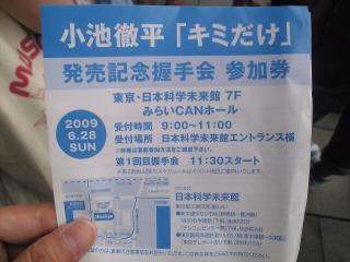 徹ちゃんのシングル「キミだけ」発売記念握手会で、日本科学未来館に行ってきました。