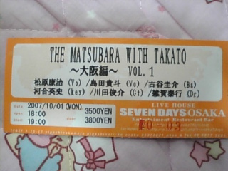 THE MATUBARA WITH TAKATOのライブで、『SEVEN DAYS OSAKA』に行ってきました!